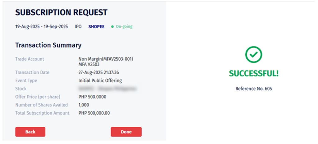 7. Enter your Trading Pin and complete your request. You will receive an allocation result via email shortly after the subscription period ends.