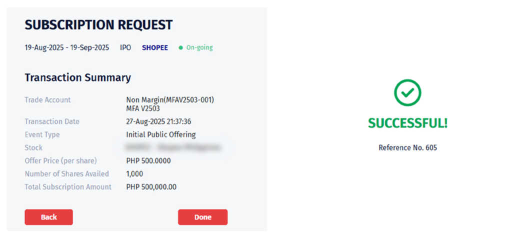 6. Enter your Trading Pin and complete your request. You will receive an allocation result via email shortly after the subscription period ends.